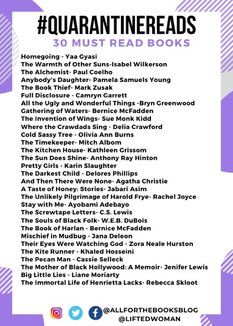 So we have officially been in semi Quarantine for a whole year. No, I’m just kidding but I am sure some people feel that way. There has been so much uncertainty and so little movement that people are searching all over for new hobbies. One that never gets old is READING. A friend and I sat down and put together a list of great books to read during this time at home. These books are powerful, engaging, but not too heavy. They are just right!